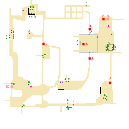 勝利条件:劉禅の撃破 敗北条件:孫権の敗走 制限時間:90分 ■点心 ・簡雍 撃破(◎) ■仙酒 ・孫権の右上にあるツボ(★) ■武器 ・赤紫点 ・黄忠 ・馬超 ■アイテム ・青紫点 ・星彩 ・月英 ■回復アイテム a:体力+50 b:体力+100 c:体力+200 d:体力+400 e:体力MAX x:弓+10 y:覚醒印 ■敵武将 A:劉禅(蒋エン、費イ、楊儀) B:馬超(馬岱) C:黄忠(王平、厳顔) D:姜維(李厳、高翔) E:星彩(張苞、張翼) F:関興(関索、廖化) G:月英(簡雍) ■攻略アドバイス 馬超は開始後しばらくすると、B2地点に移動します。 馬超撃破後、右下の敵拠点を占拠し、 味方援軍の到着を待とう。 星彩や、城内は弓が飛んでくるので、 上手く飛んでこないところで戦おう。 連弩を壊しながら進んで行ったほうが無難。 壊すのが面倒なら、東側から行こう。 ただし、城内に連弩が沢山あるので注意。 また、星彩・姜維・月英が一気に城内に入ってくる可能性もあるので、 危険性が高い。 八陣図中央で象を壊すと、 敵伏兵が出現。 倒すと先へ進めます。 |