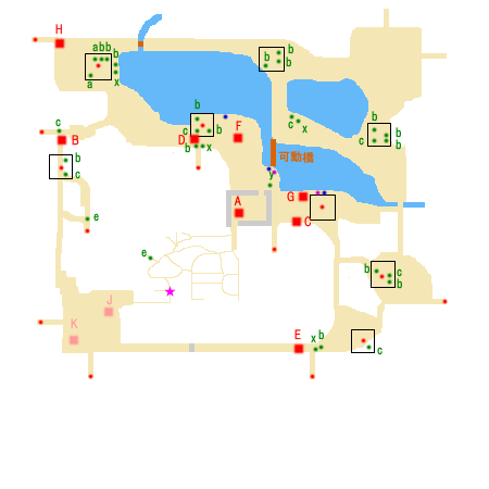 勝利条件:劉備の撃破 敗北条件:孫権の敗走 制限時間:90分 ■点心 ・諸葛亮 撃破(J) ■仙酒 ・石兵八陣左下のツボ(★) ■武器 ・赤紫点 ・関興 ・趙雲 ■アイテム ・青紫点 ・厳顔 ■回復アイテム a:体力+50 b:体力+100 c:体力+200 d:体力+400 e:体力MAX x:弓+10 y:覚醒印 ■敵武将 A:劉備(馬良、陣式) B:趙雲(張苞、雷銅) C:馬超(馬岱、呉蘭) D:厳顔 E:関興(関索) F:廖化 G:李厳 H:沙摩柯 J:諸葛亮(馬謖) K:王平(張翼) ■攻略アドバイス 石兵八陣に入ると、 マップが見えなくなるので注意。 朱然を援護し、火計を成功させよう。 (馬超、廖化、厳顔を倒せばほぼ大丈夫) すぐに敵本陣に突っ込んで終わらせてもOK。 |