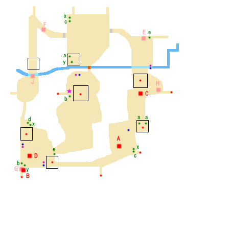 勝利条件:孟獲の撃破 敗北条件:孫権の敗走 制限時間:60分 ■点心 ・祝融 撃破(B) ■仙酒 ・マップ中央の敵拠点付近のツボ(★) ■武器 ・赤紫点 ■アイテム ・青紫点 ■回復アイテム a:体力+50 b:体力+100 c:体力+200 d:体力+400 e:体力MAX x:弓+10 y:覚醒印 ■敵武将 A:孟獲(孟優) B:祝融 C:朶思大王 D:金環三結(阿会喃、董荼那) E:木鹿大王 F:忙牙長 G:帯来洞主 H:楊鋒 J:兀突骨 ■攻略アドバイス まずは祝融、金環三結を片付けて、 マップ右下へ。 マップ右下に行くと木鹿大王、忙牙長が出現。 孫権を助けに行ってもいいし、 そのまま孟獲を倒してしまってもOK。 |