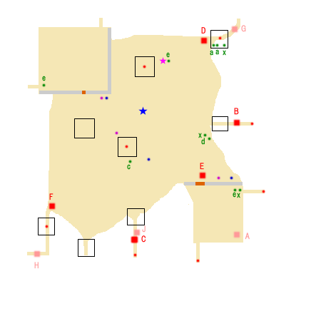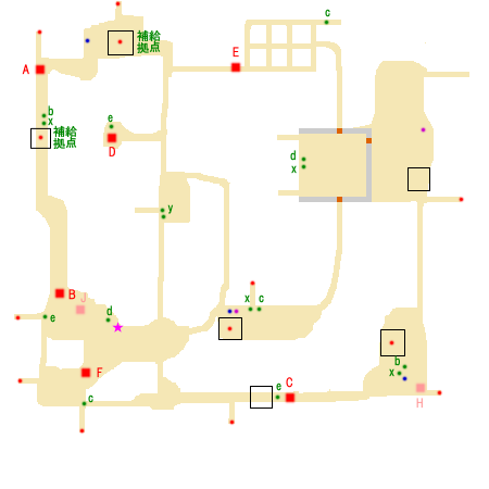 勝利条件:董卓の撃破 敗北条件:馬騰の敗走 制限時間:45分 ■点心 ・華雄 撃破(D) ■仙酒 ・城右の拠点右側のツボ(★) ■武器 ・赤紫点 ■アイテム ・青紫点 ★(絶影鐙):張済・胡軫出現後、1分以内に両方とも撃破 ■回復アイテム a:体力+50 b:体力+100 c:体力+200 d:体力+400 e:体力MAX x:弓+10 y:覚醒印 ■能力アップ(参考までに) 趙岑:攻撃+2 郭:攻撃+2 王方:防御+2 李蒙:攻撃+2 牛輔:攻撃+2 徐栄:防御+2 董旻:攻撃+2 胡軫:防御+2 張済:攻撃+2 李粛:防御+2 李儒:防御+2 ■敵武将 A:董卓(李粛) B:董旻(趙岑) C:徐栄 D:郭(王方) E:華雄 F:牛輔(李蒙) G:胡軫 H:張済 J:ハンチョウ K:(右中拠点より出現のはず>不明) ■攻略アドバイス 右上、左下の拠点を占拠し、 友軍を呼びいれよう。 その後、右中、中下の拠点を占拠し、 敵援軍が現れるのを阻止する事。 |